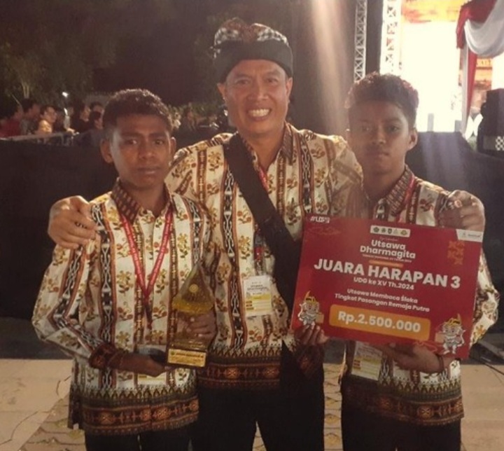 Pada malam pengumuman (Kamis, 11 Juli 2024), Tim Kontingen UDG Provinsi Maluku berhasil membawa pulang Juara Harapan III Lomba Membaca Śloka Tingkat Remaja Putra atas nama Anakletus Elier dan Putra Jamila Manteanubun.