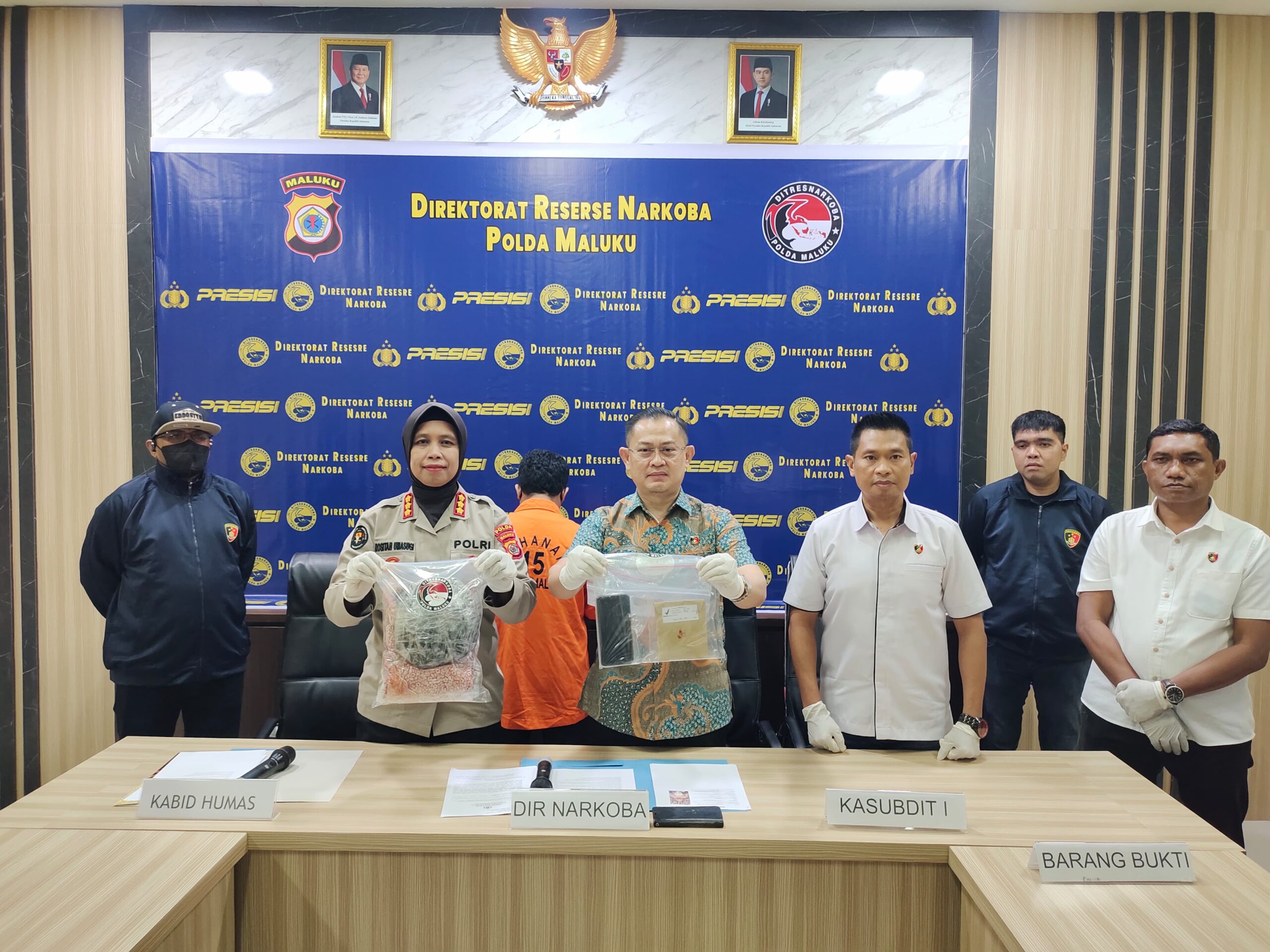 Pengungkapan kasus narkoba dihadiri Direktur Narkoba Polda Maluku, Kombes Pol. Heri Budianto, S.IK., M.H, dan Kasubdit I Ditresnarkoba AKP. Andi Amrin S.Sos., M.H.
